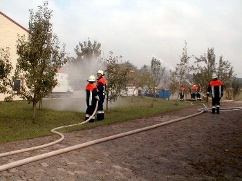 Unter der Leitung von Kommandant Philipp Eckstein (Altmannshausen) wurde ein Brandszenario auf dem Firmengelände angenommen. Die Wehren aus Altmannshausen und Ziegenbach übernahmen die Löschwasserversorgung