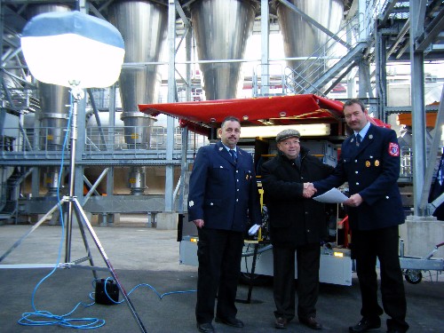 Von Links: Vorstand Rainer Spies, Geschäftsführer Fa. Rauch Johann Kellner, KdT. Stütz Helmut, Betriebsleiter Fa. Rauch Thomas Engelhart und Bürgermeister Ludwig Günther.