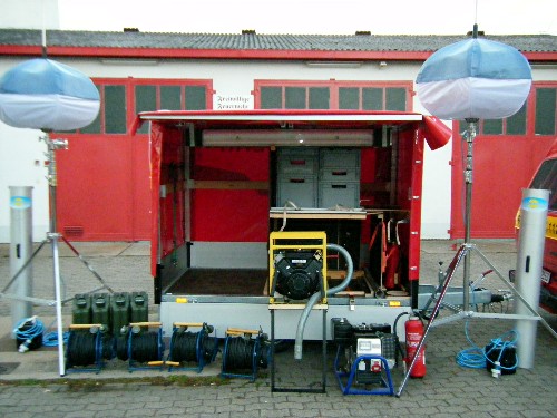 Der Anhänger selbst ist mit einer Umfeldbeleuchtung die über den Stromerzeuger gespeist wird ausgerüstet.
