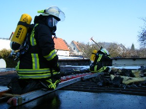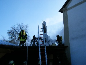 Um die Ausbreitung von Glutnestern zu verhindern, wurde ein Teil des beschädigten Daches abgedeckt. Von der FF Markt Bibart waren 3 Atemschutz-Trupps im Einsatz.