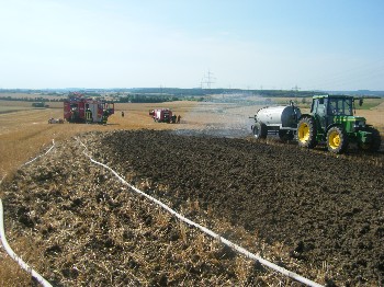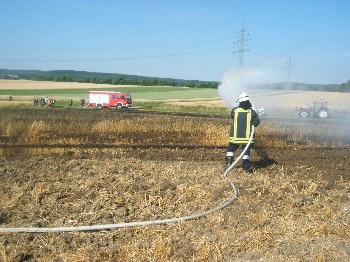 Zugleich wurde durch die ortsansässigen Landwirte das Feld mit Wasserfässern genässt. Nach ca. 1 Stunde konnten die Kräfte wieder zum Standort zurück.
