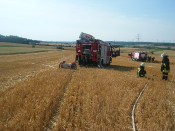 Die FF Markt Bibart wurde alarmiert, da im Scheinfelder Ortsteil Oberlaimbach ein Getreidefeld brannte. Die Kräfte aus Markt Bibart, Scheinfeld und Oberlaimbach hatten den Brand jedoch schnell unter Kontrolle.