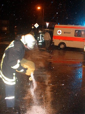 Nach einen Verkehrsunfall mit zwei verletzten Personen mußte die Wehr die Ausleuchtung und Verkehrsregelung an der Unfallstelle übernehmen. Des weiteren mußten große Mengen Öl und Diesel mittels Ölbinder aufgefangen werden. Die restlichen Aufräumarbeiten so wie Ölbeseitigung übernahmen die Kollegen der Strassenmeisterei. Alarmierung: 10.02.09/ 20.57 durch FME. Alarmstufe: Schleife M.B Weitere Einsatzkräfte: Polizei, BRK, KBM Bender |
