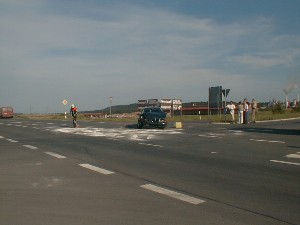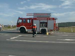 Die FF Markt Bibart übernahm nach einem Verkehrsunfall auf der Bundesstraße 8, Höhe Nahversorgungszentrum, die Verkehrsabsicherung und entfernte auslaufende Flüssigkeit.