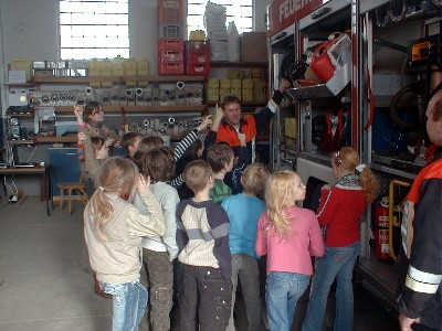 Kinder aus der 3. Klasse Grundschule im Gerätehaus