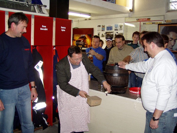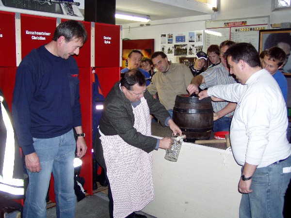 Pünktlichst um 17.00 Uhr betrat unser Bürgermeister Ludwig Günther unser Feuerwhrgerätehaus um mit der feierlichen Eröffnung der Kerwa zu beginnen. Nach anfänglichen Schwierigkeiten konnte die erste Kerwa Maß durch unseren Bürgermeister gzapft werden.